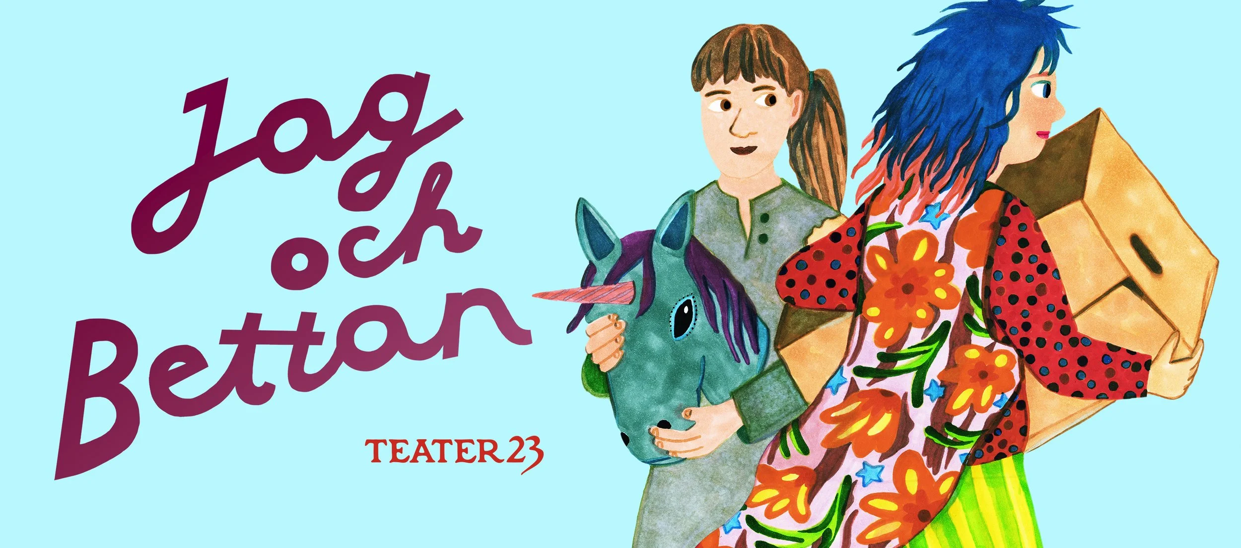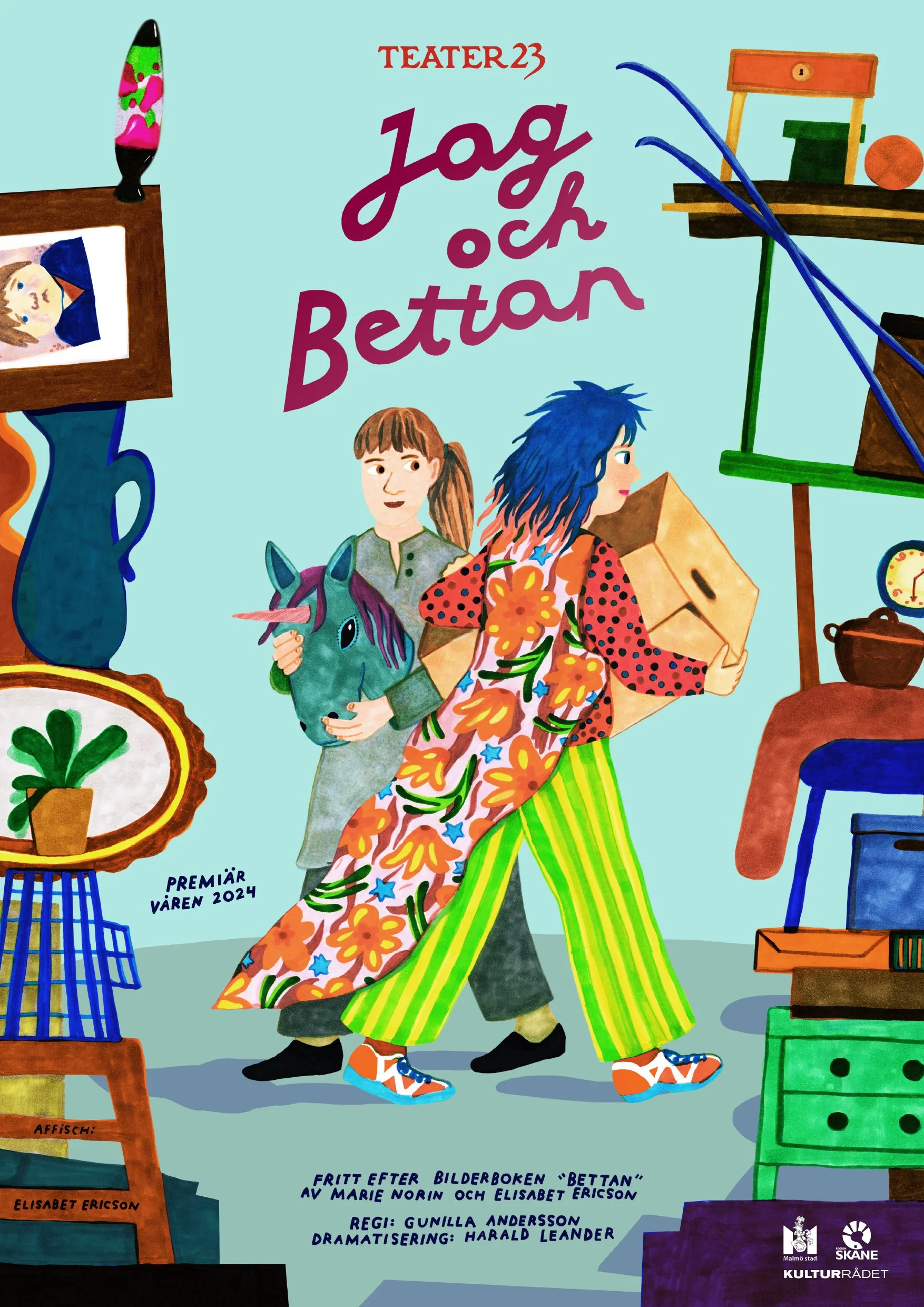 Illustrated poster for the theatre play “Jag och Bettan”, produced by Teater 23 in Malmö. The play is based on the picture book “Bettan”, by Marie Norin (text) and me (pictures).